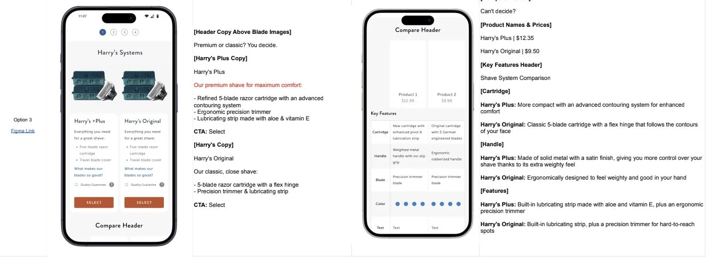 The Problem: User feedback revealed confusion between Harry’s Original and Plus. Shoppers weren’t sure which product best fit their needs, and subscription details weren’t consistently clear.